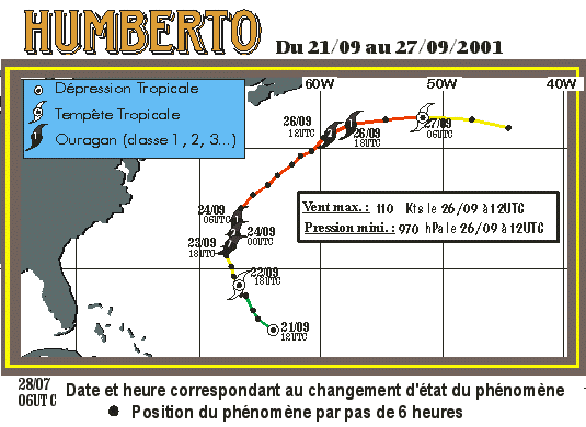 elle s'intensifie et devient ouragan le 22. HUMBERTO, alors très temporairement